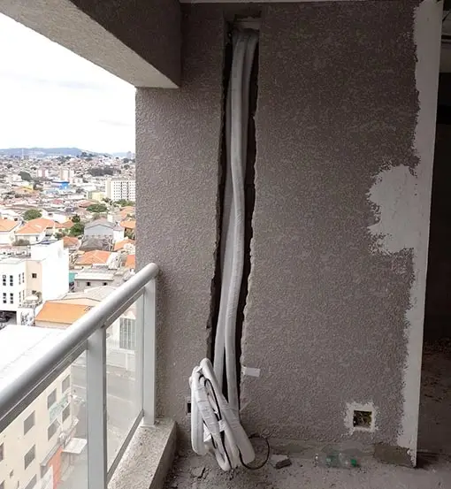 A infraestrutura para ar-condicionado é a preparação prévia de pontos de espera durante a construção ou reforma para receber os aparelhos de climatização. Inclui instalação de pontos elétricos dimensionados, tubulação de cobre pré-instalada, sistema de drenagem e furações técnicas. É importante porque evita quebra de paredes após a obra pronta, proporciona acabamento estético embutido, reduz custos futuros e garante instalação correta conforme normas técnicas. A Martins Refrigeração realiza projeto de infraestrutura predial para ar-condicionado em Joinville integrado aos projetos arquitetônico, elétrico e hidráulico.
